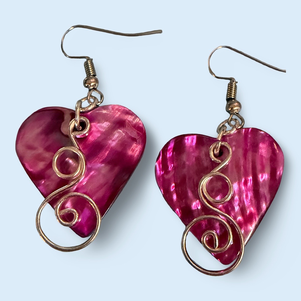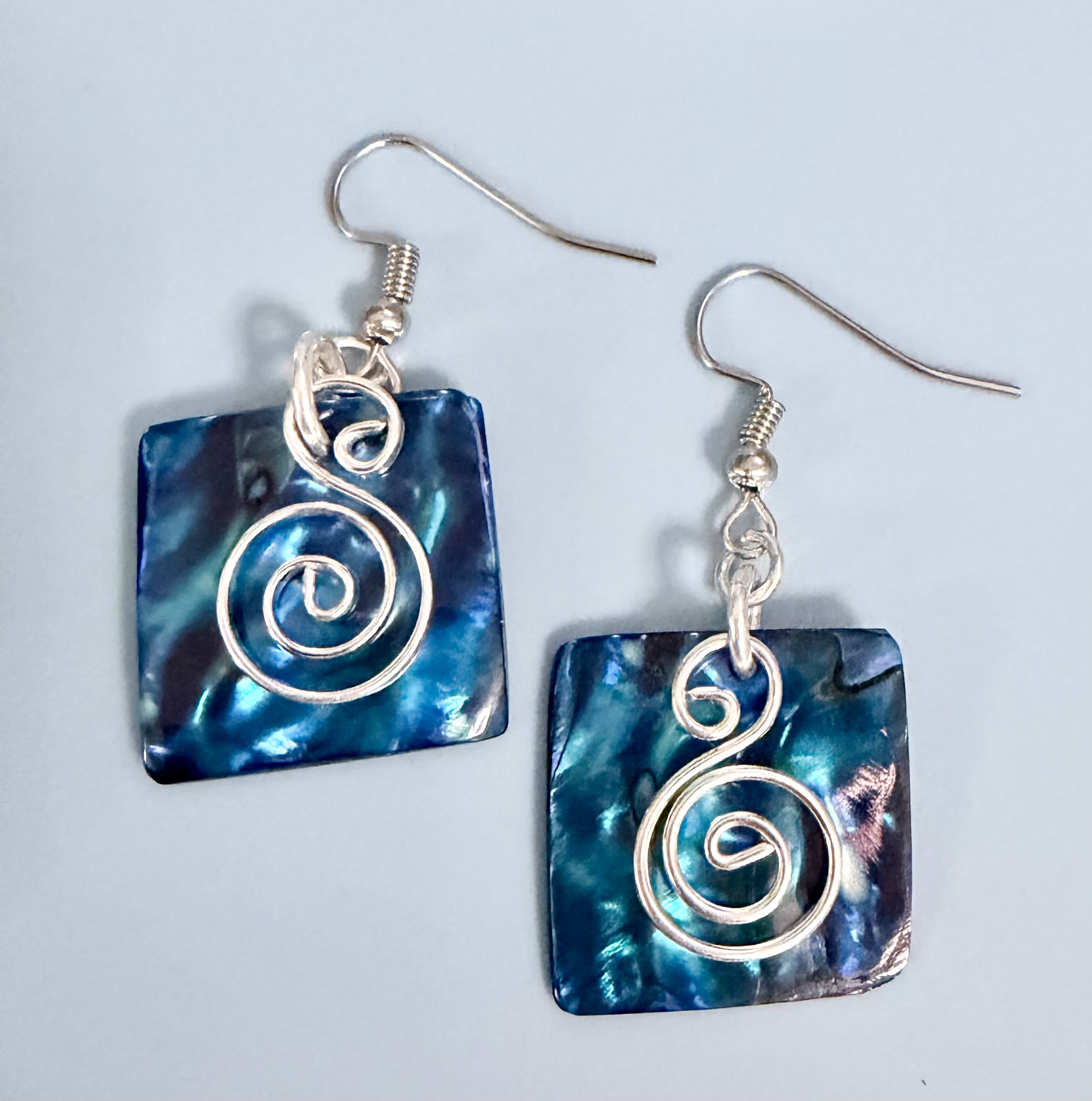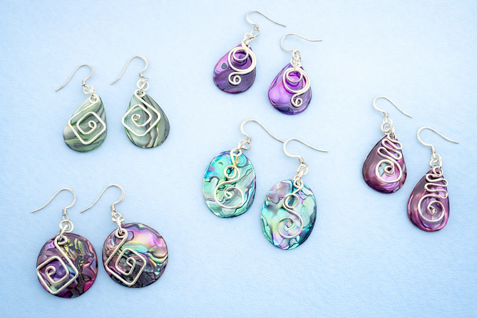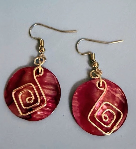 Wire wrapped shell earrings handmade in Mexico in assorted colors and shapes