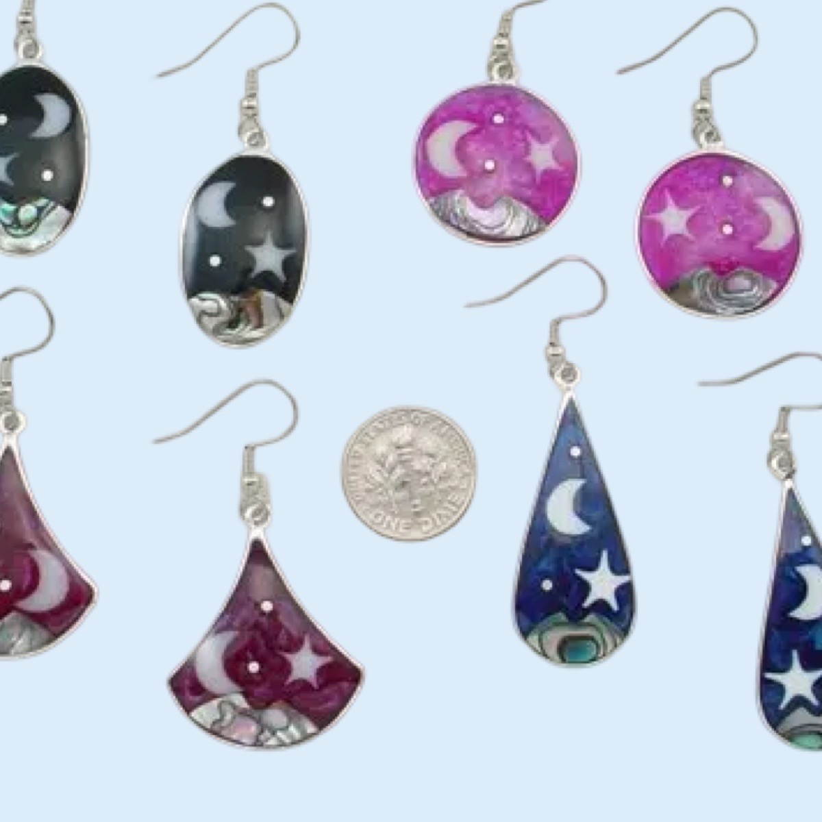 Handmade Earrings with evening scene. Multiple colors and shapes