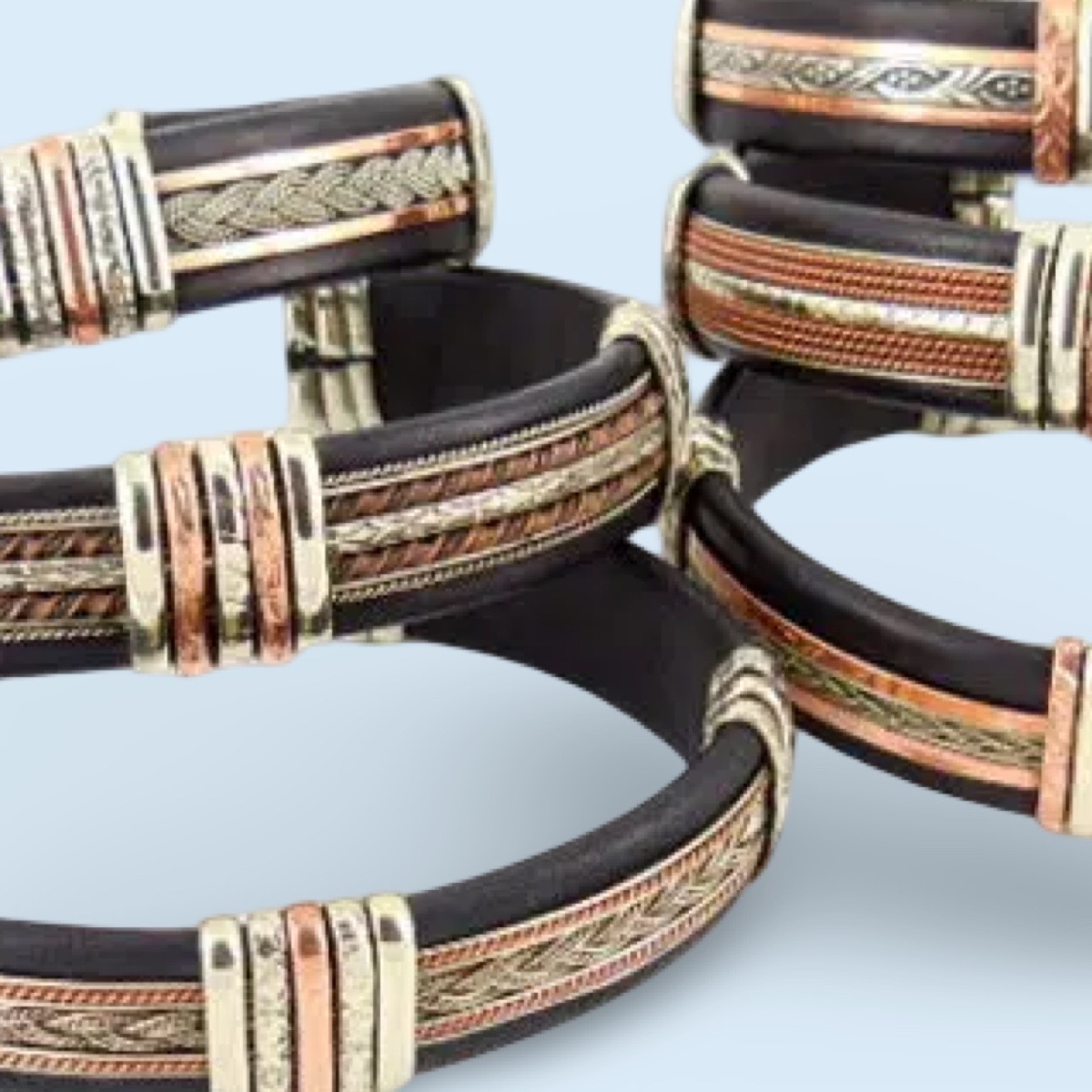 Men’s leather bracelet black with copper (Larger than regular wide bracelets)