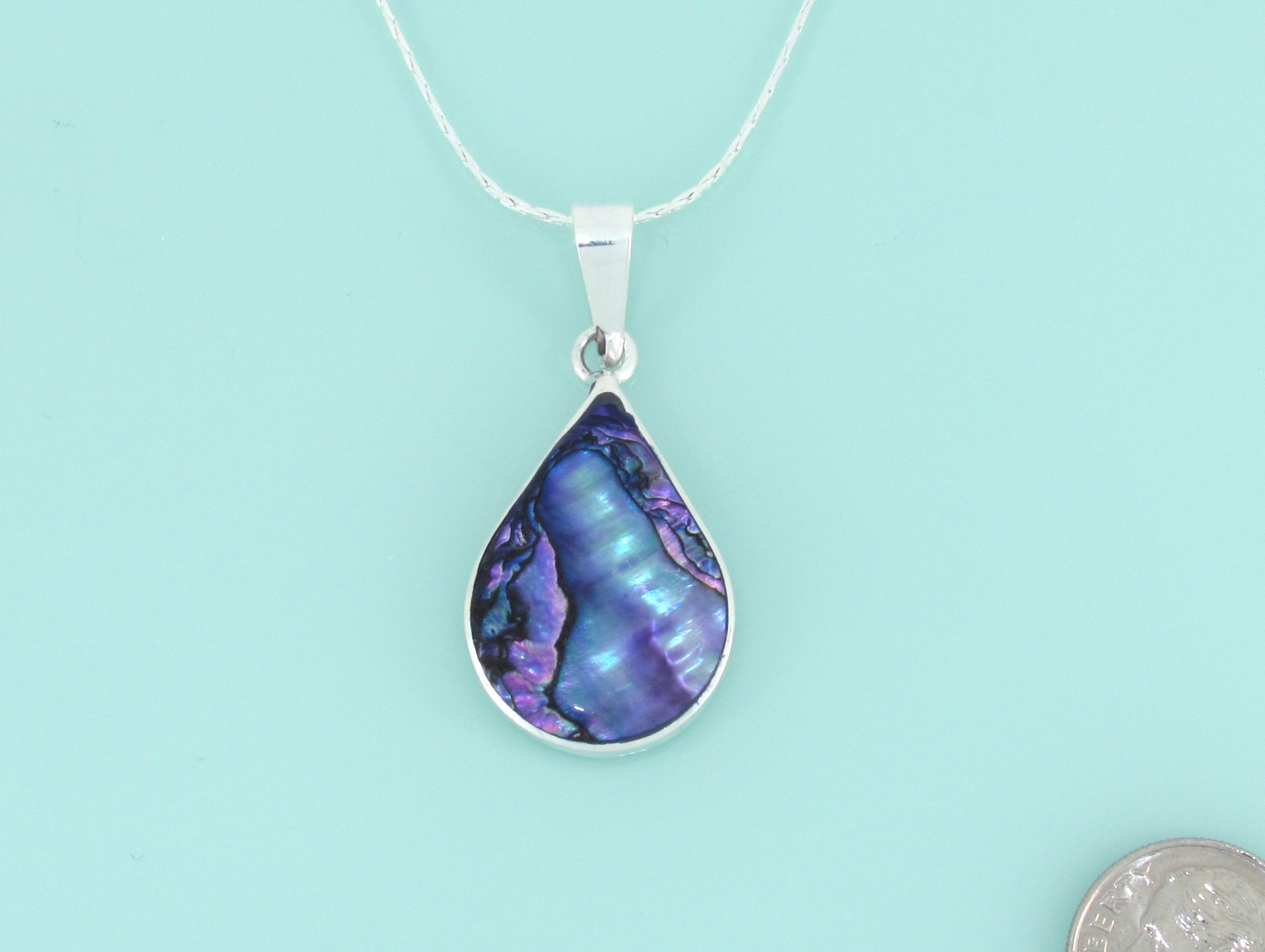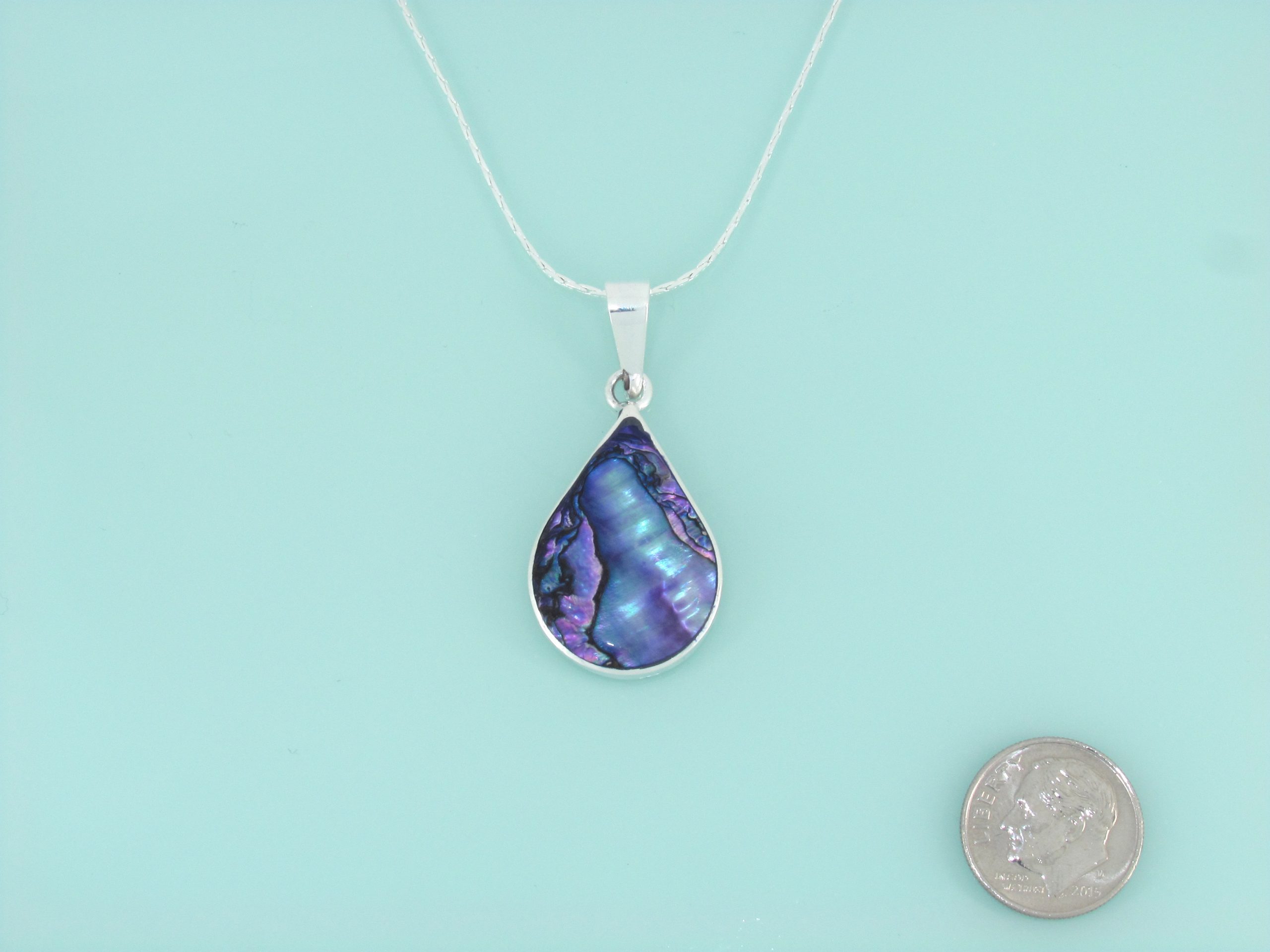 Dyed shell teardrop pendant on 18″ silver plate chain purple